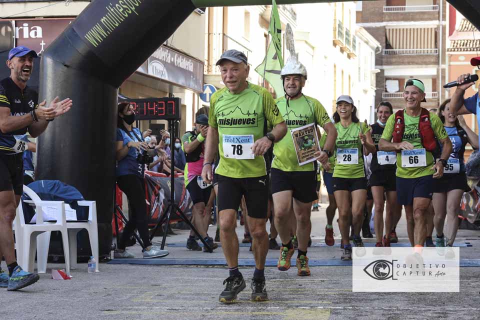El soleado día permitió experimentar la dureza y exigencia del trazado así como disfrutar de la espectacularidad de los paisajes de las montañas de la Serra Grossa y de emblemáticos parajes como el Embalse del Bosquet y de les Alcusses -La Toscana Valenciana-. Una elevada participación de público arropó a los 640 deportistas inscritos y pudo animar a los miembros de la colla y en especial aplaudir los triunfos del Trail y Sprint Trail. Aunque no pudieron estar en la carrera sí llegaron a tiempo para repartir elevadas dosis de simpatía y unirse a la celebración Xesco y Susana.