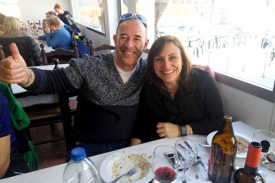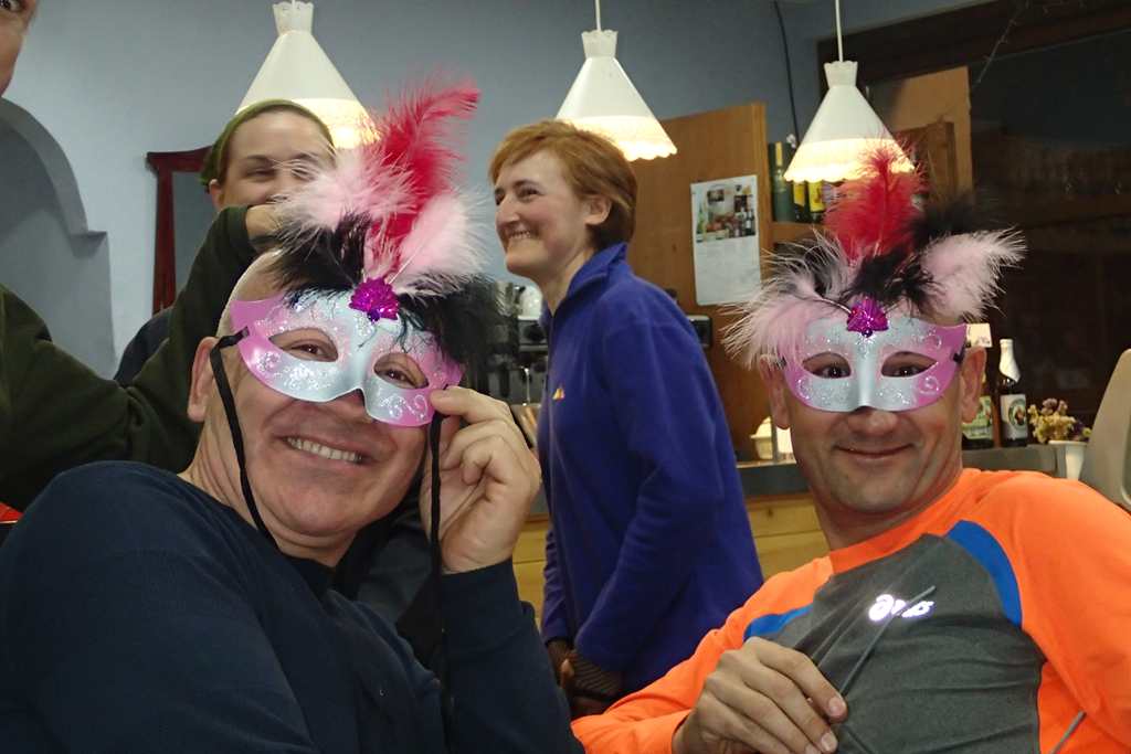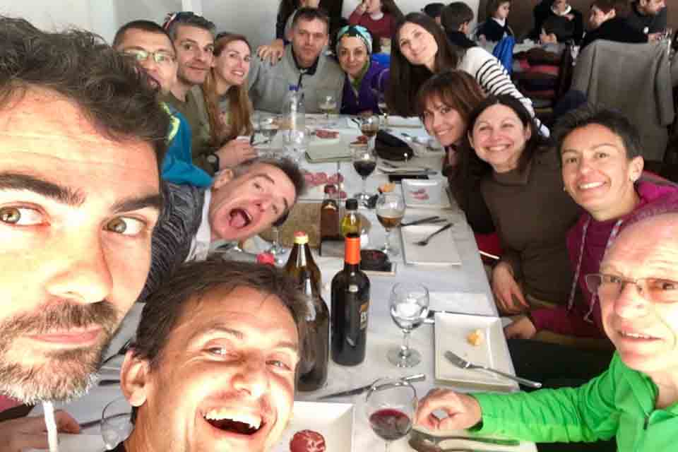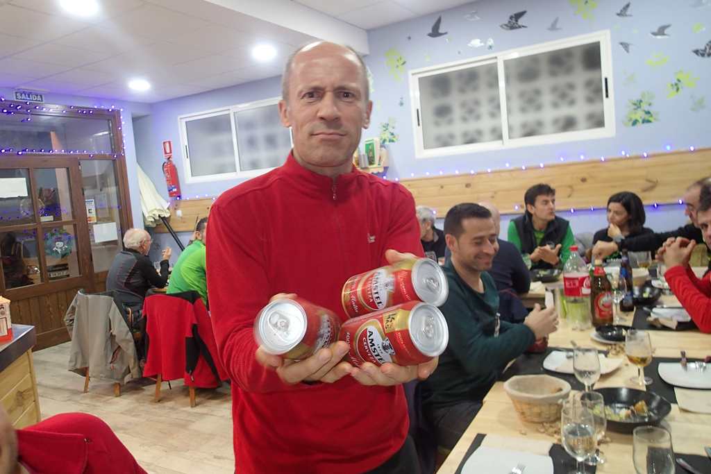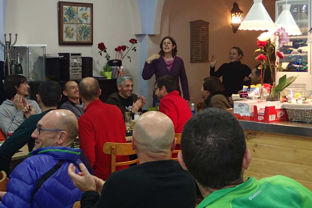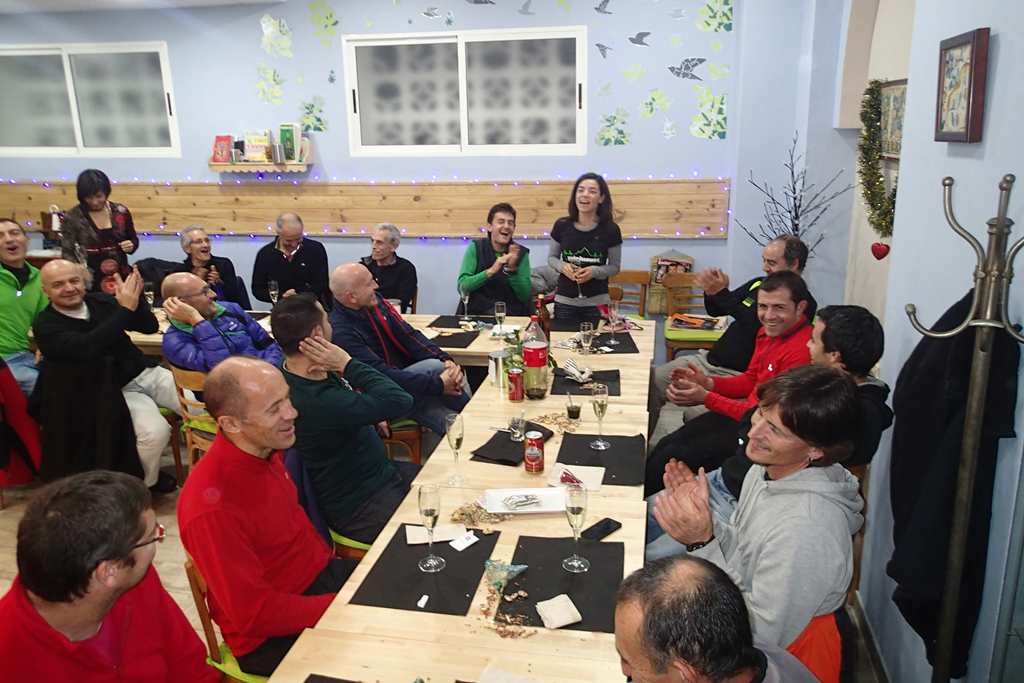 Menú CSV: Entrantes con zapatillas de trail por Pico del Aguila, Ensalada de amistad aderezada de alegría, paella con los mejores ingredientes del terreno montañero y de postre fruta de la risa y pastel de buen rollo...