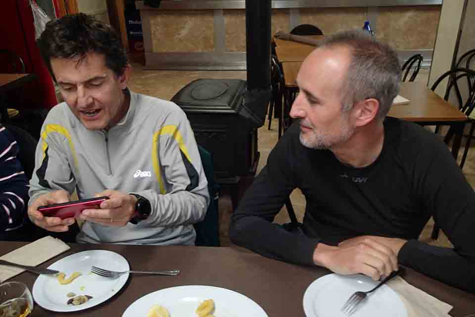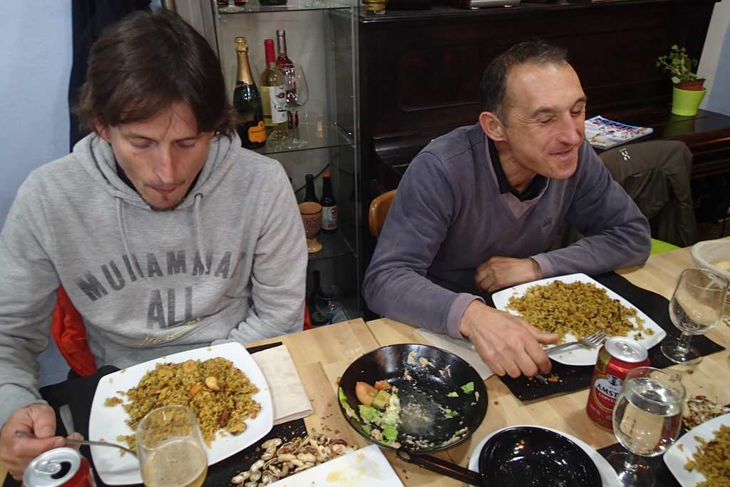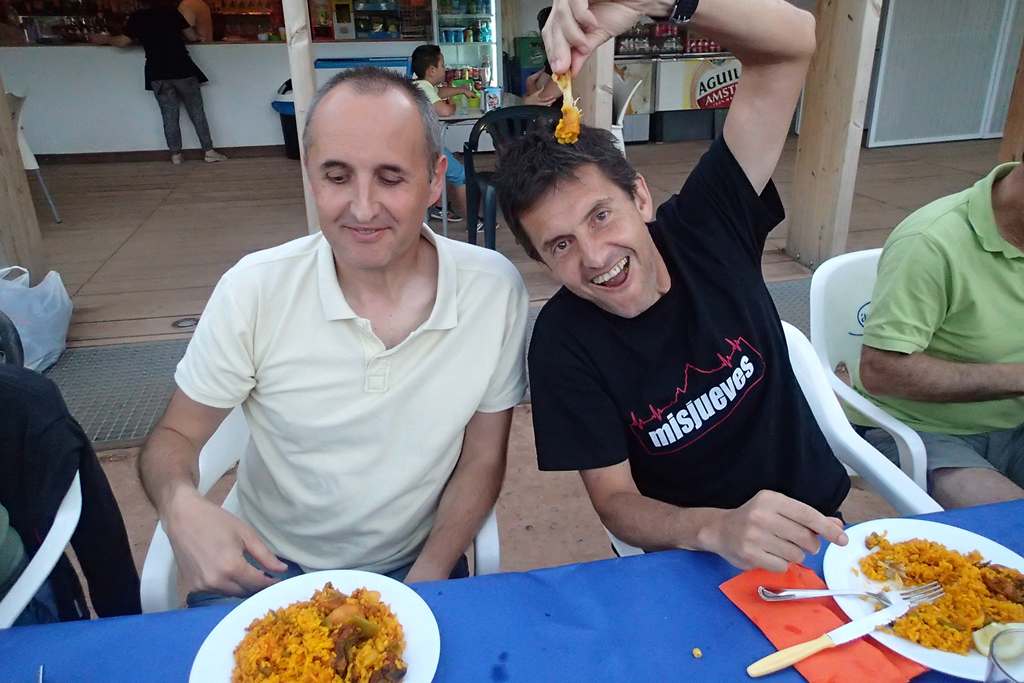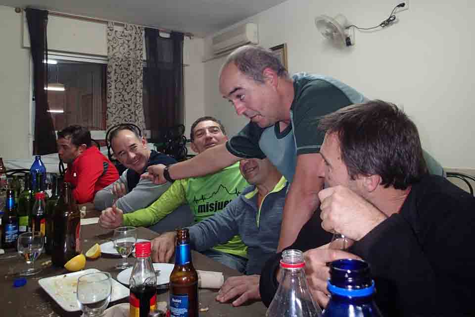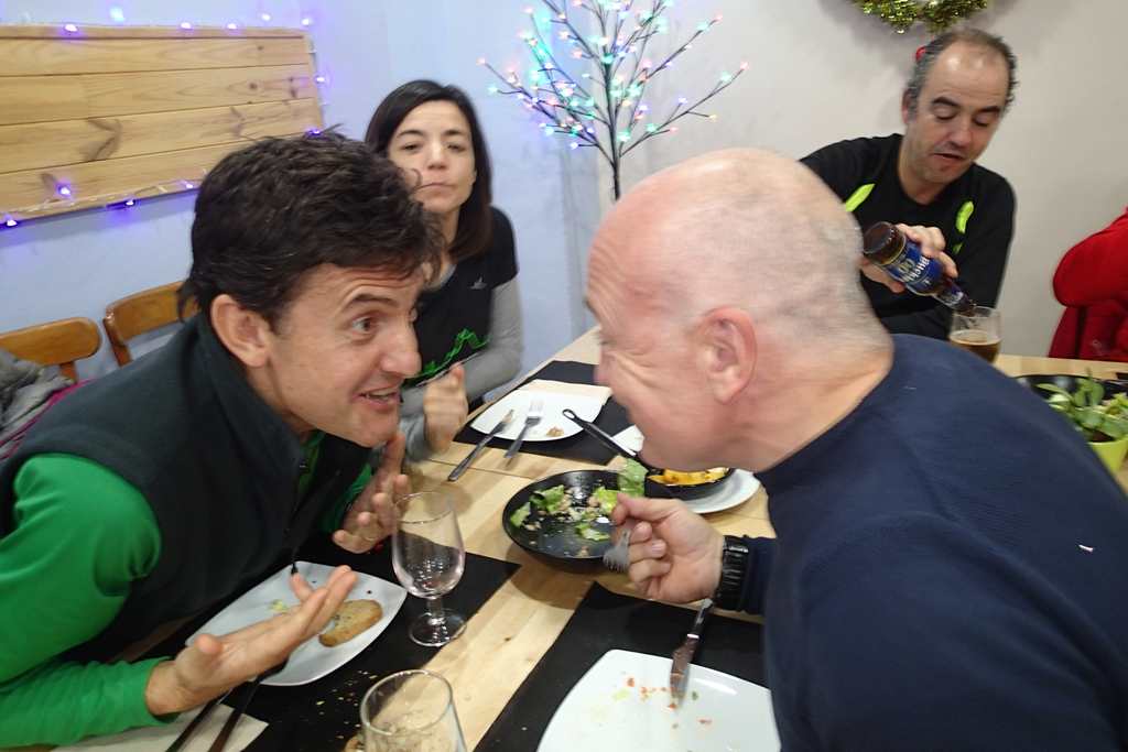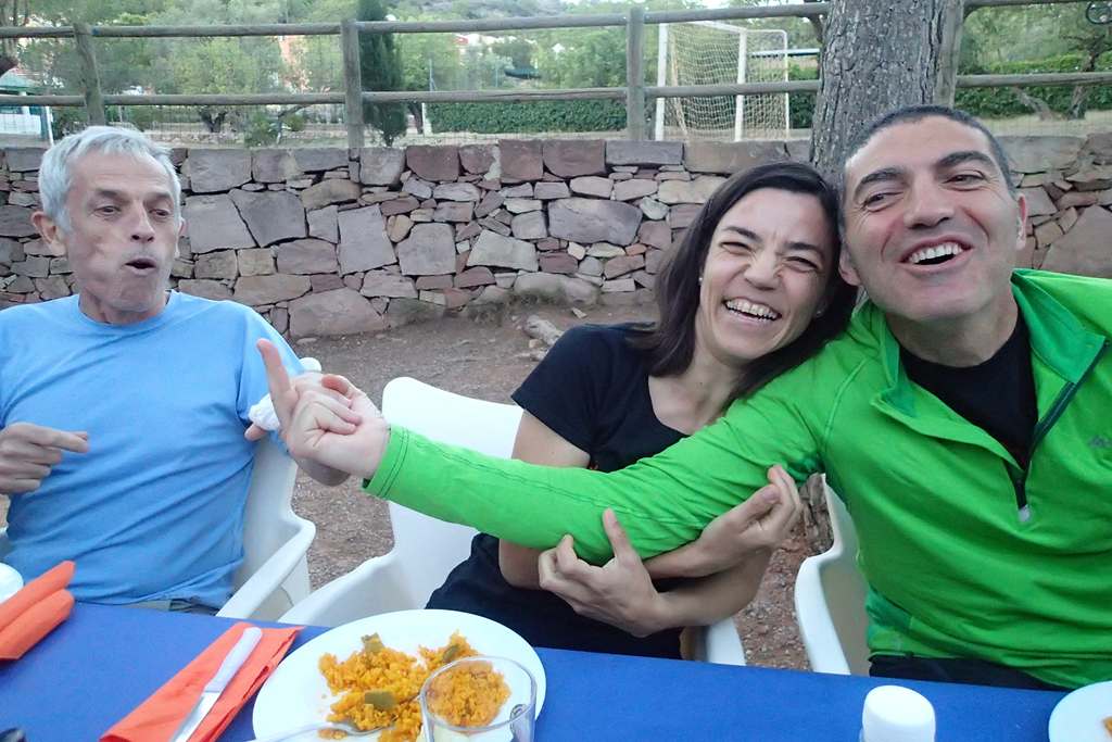 Menú CSI: Entrantes por el Parking del Plà d'Estivella, Ensalada de romeros del Barranc d'Alcalá, paella con el mejor arroz del Barranc de Linares y de postre fruta de Ronda, discurso de JMaría como las rutas (Dos horitas cortas y lentas) y fuegos artificiales de buen rollo y risas "a poalaes"...