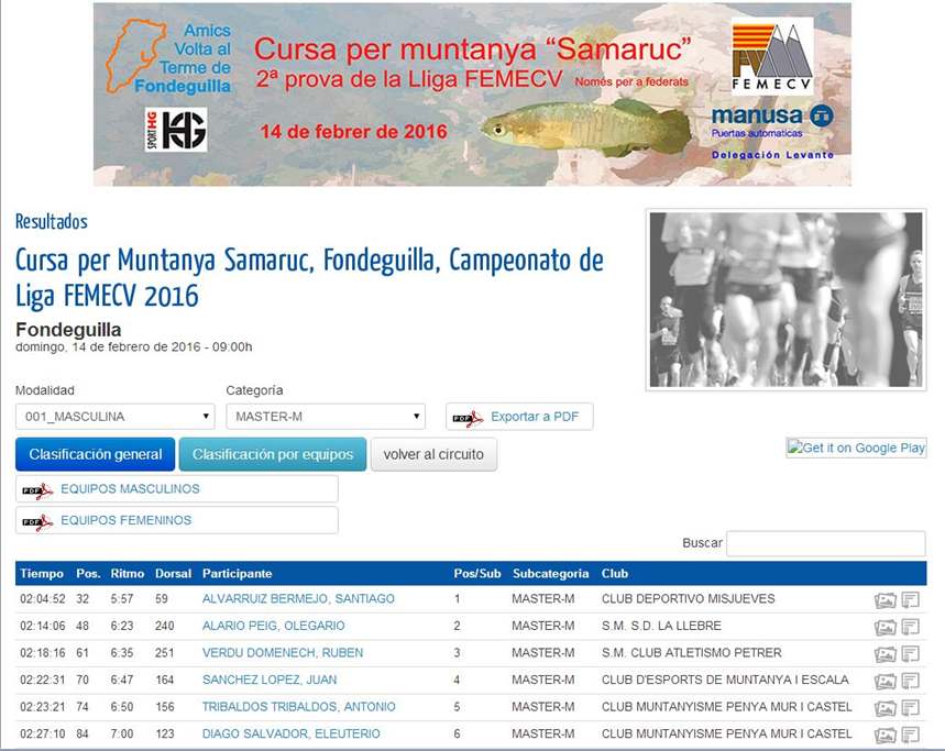 Santi Alvarruiz: GANADOR Máster-M, Olatx Alvariño 3ª Femenina, Luz Cabanes 3ª Femenina Veterena y CD Misjueves TERCERO por Equipos
