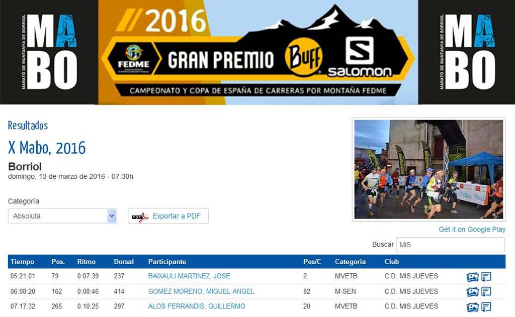 Santi: 19 General y Campeón Máster Olatx: 2ª General mujeres y la 64ª de la general absuluta, Guillem: 33º de la General y 10º de Veteranos, Pablo Sanchis:34º de la General y el 23º de la categoria Senior, Ramón: 184º de la General y 9º Máster...