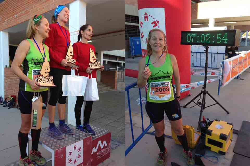 Aniversario en la tradicional prueba de las carreras de montaña celebrándose la Vigésima edición de la Maratón de Espadán. Por este motivo fueron invitados ganadores de pasadas ediciones en sus diferentes modalidades. Pues Manoli aceptó dicha invitación, volvió a correr esta prueba y lo hizo con un nuevo podium, esa "samarreta verde" le dio energía para ser segunda enla categoría femenina. 42,52 Km: Manoli Panizo 2º Femenina