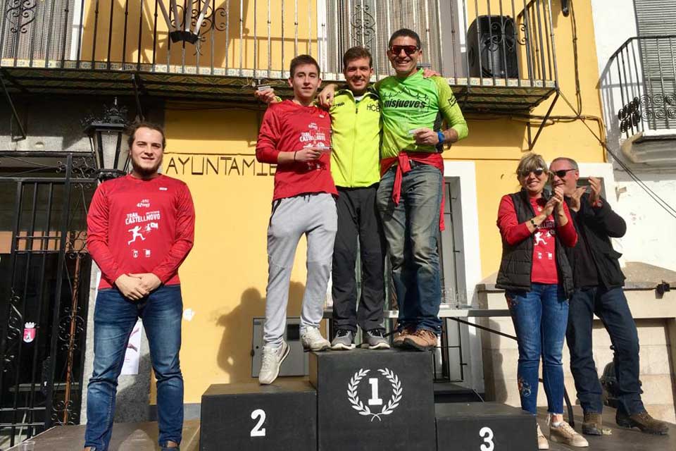 Podium Trail 20K: Santi 1º Máster (y 4º General), Manolo 3º Máster, Manoli 2ª Máster Femenino / Podium 10k: Batiste 1º SUPERMáster