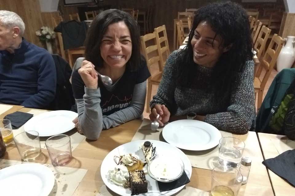 Nuestras compañeras de colla, Marian y Ana O., derrocharon el entusiasmo y fortaleza habitual.