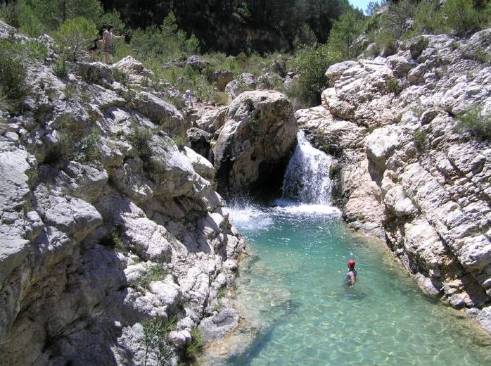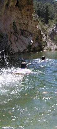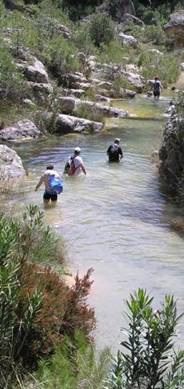 barranco. Ideal para el verano. Ruta: Seguimos la pista que nos conduce al barranco, al principio bastante ancho pero que luego se va estrechando. El recorrido no tiene pérdida y es una sucesión de pozas donde podremos bañarnos, con rincones muy bonitos y refrescantes para el verano. A mitad de camino, en la orilla derecha, hay una surgencia de agua donde podremos beber.La zona central suele estar seca, pero no hay que desanimarse, porque más arriba vuelve a haber agua, con buenas pozas y cascadas... hasta llegar a la pista que baja de Benefetal y atraviesa el barranco.Aquí nos damos media vuelta y desandamos el camino, pero esta vez un poco más aprisa, que la tarde ya acaba y empieza a notarse fresco...Croquis