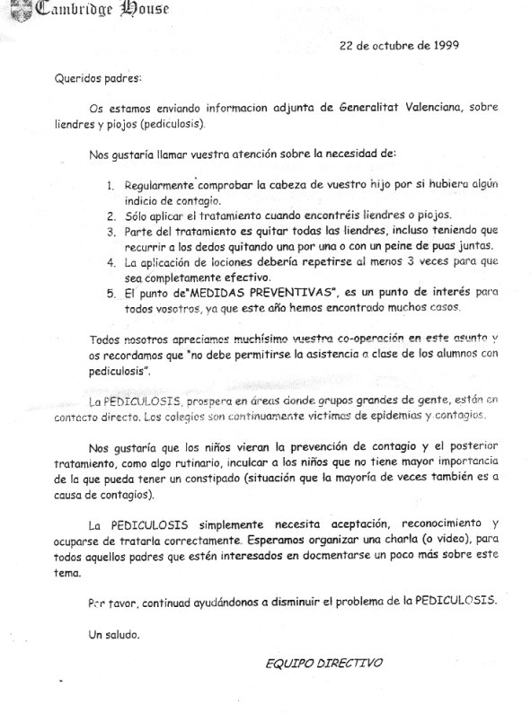 Recomendaciones de la Conselleria (hoja 1)
