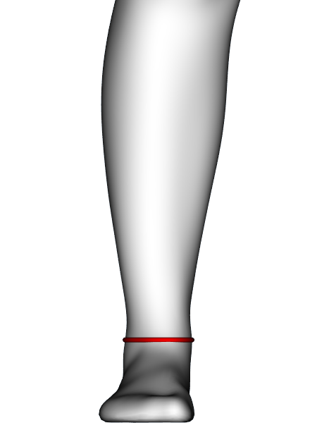 Definition: | Horizontal girth of the right leg measured at the level of the outer ankle point (virtual tape). The outer ankle point (ISO 8559-1:2017 3.1.18) is the most lateral point of the outer ankle bone (lateral malleolus). | ||