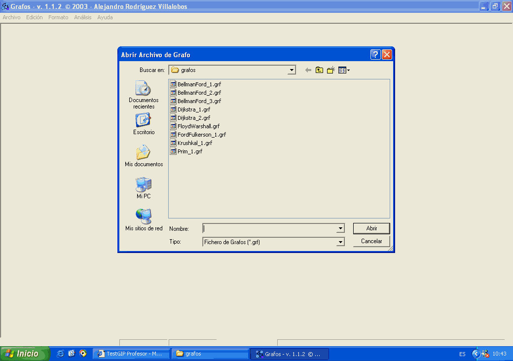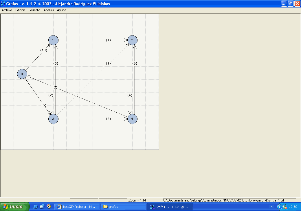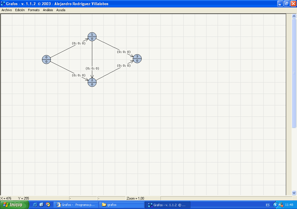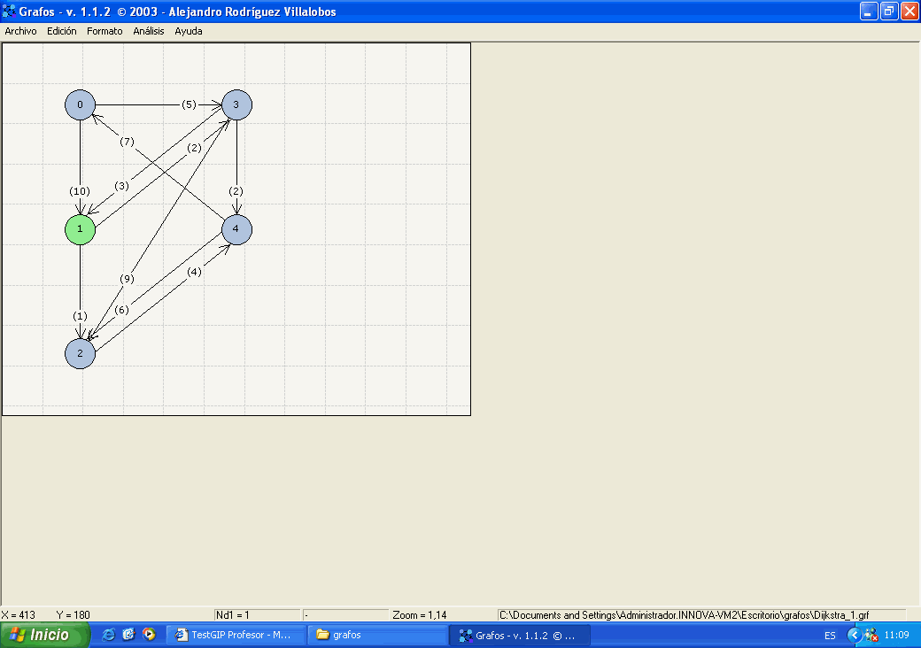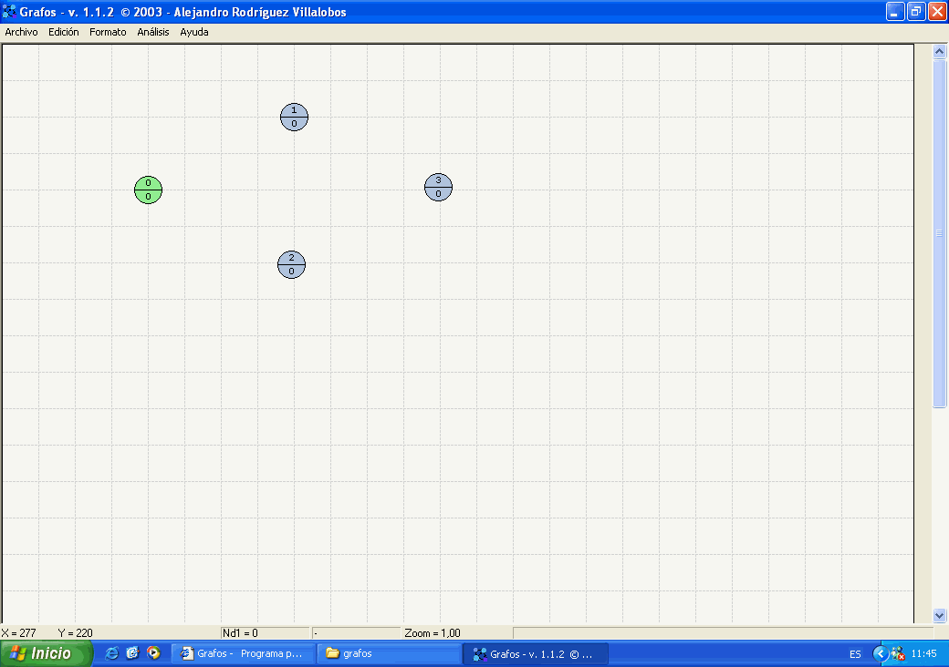 Para iniciar el programa tan solo hay que hacer click en su icono, a través de la ruta Inicio >Todos los programas > Grafos, tras lo cual el programa se iniciará y tras presentar un mensaje inicial de presentación, presentará la pantalla inicial del programa.