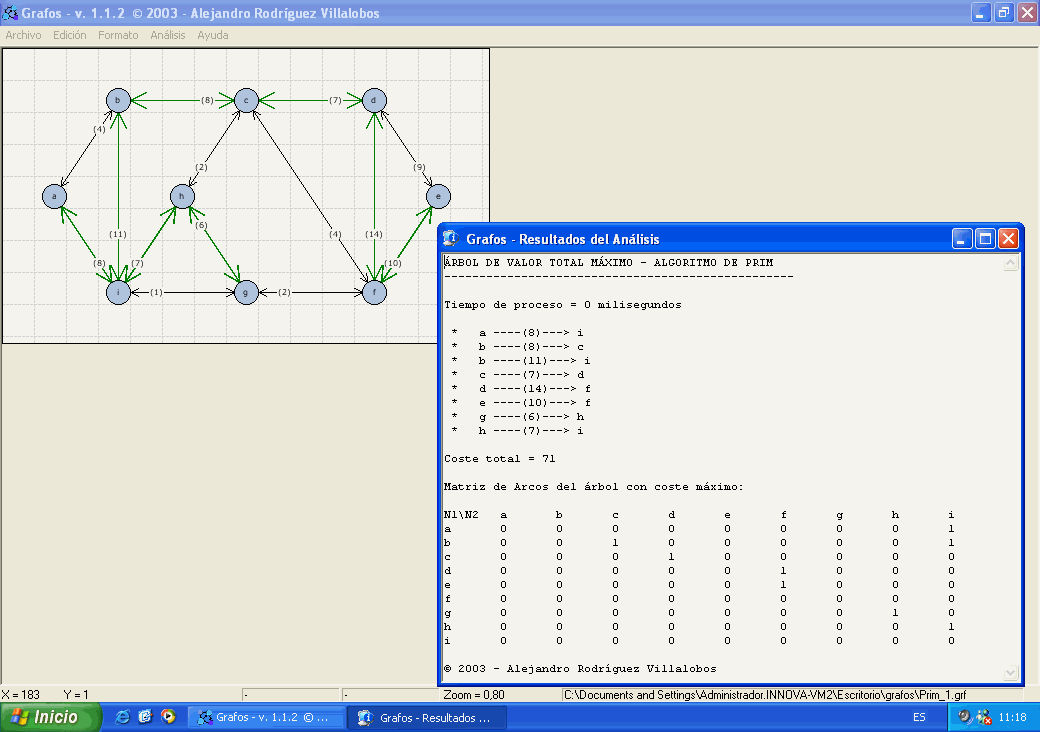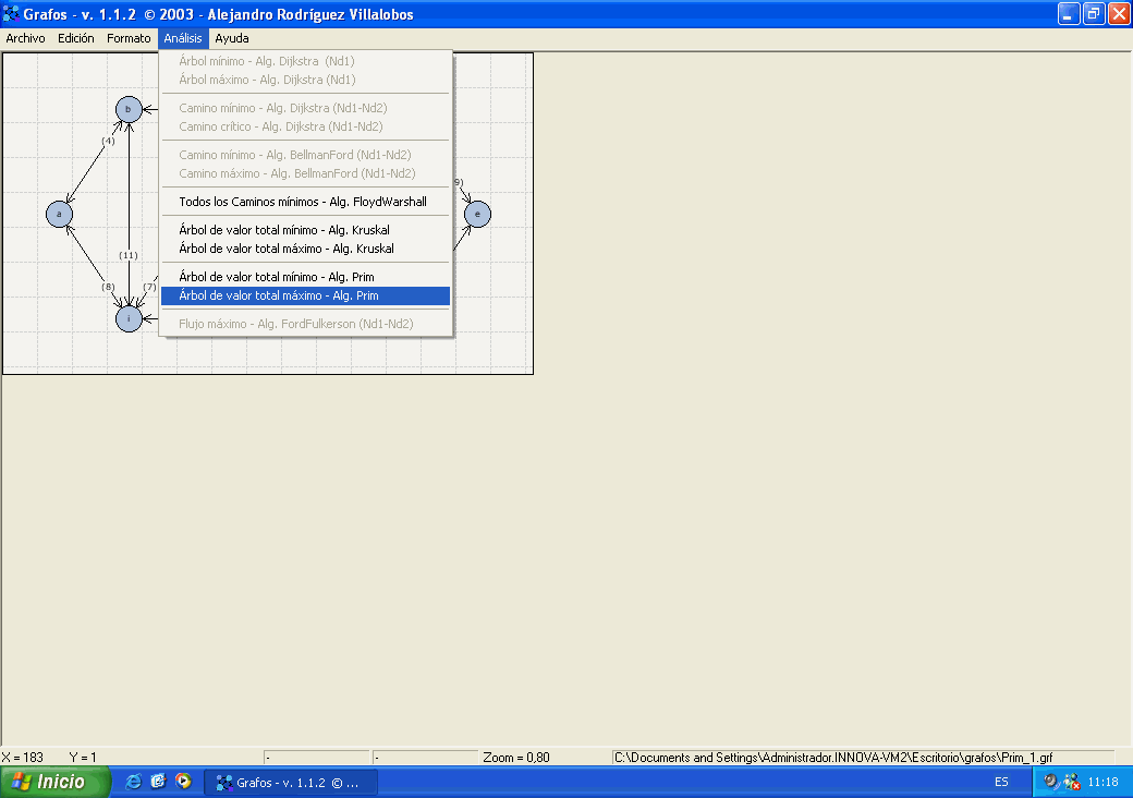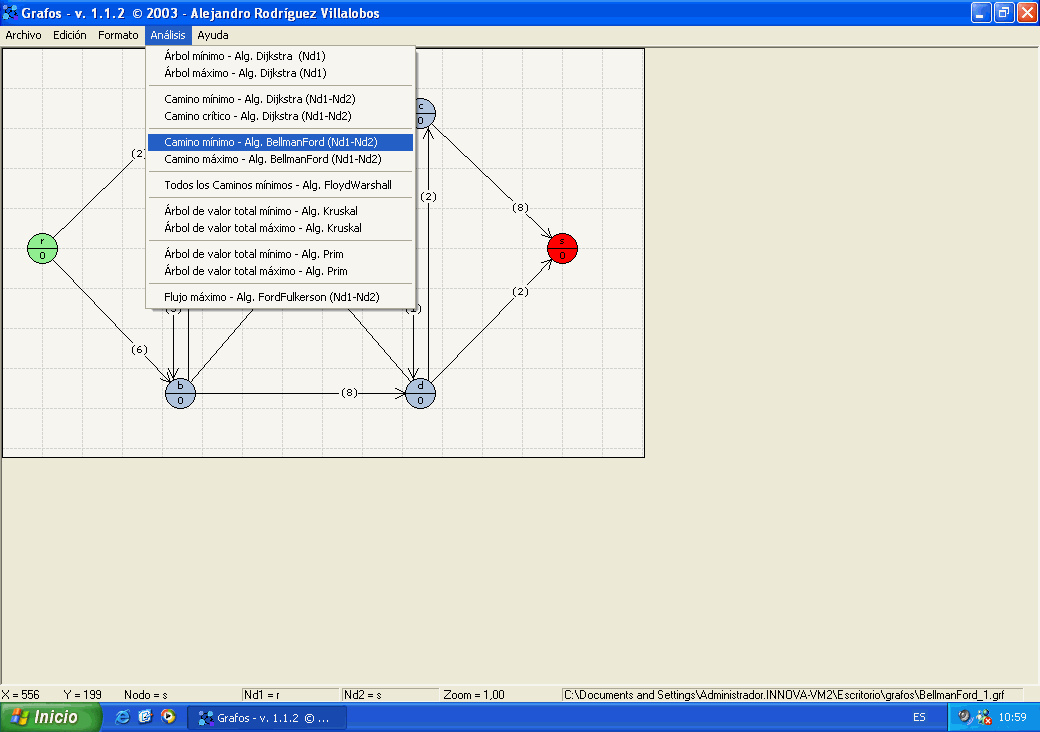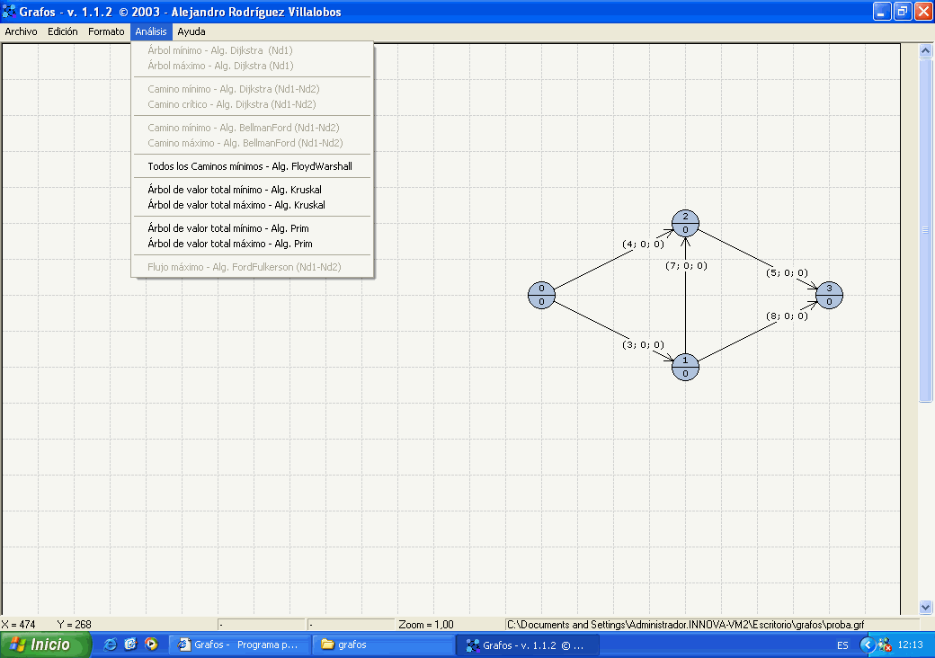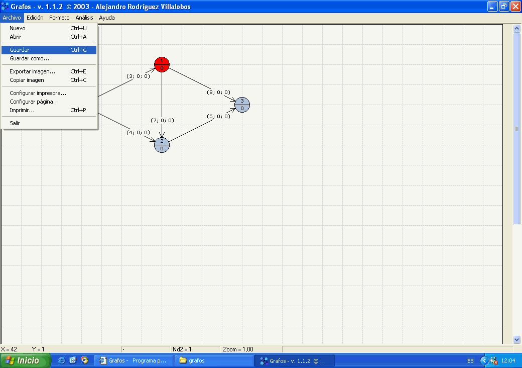 imprimirlo, copiar la imagen, o analizar el grafo con los algoritmos