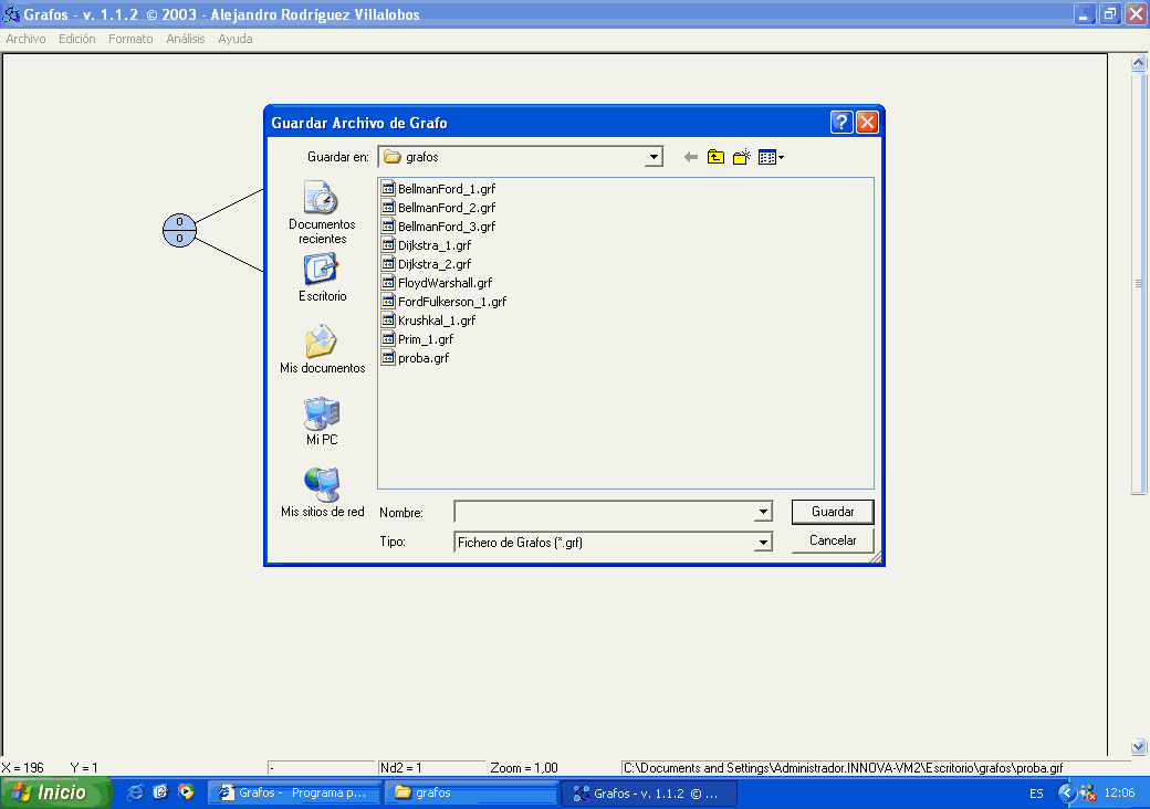 con él, modificarlo, etc.. El programa almacena los grafos en un formato propio
