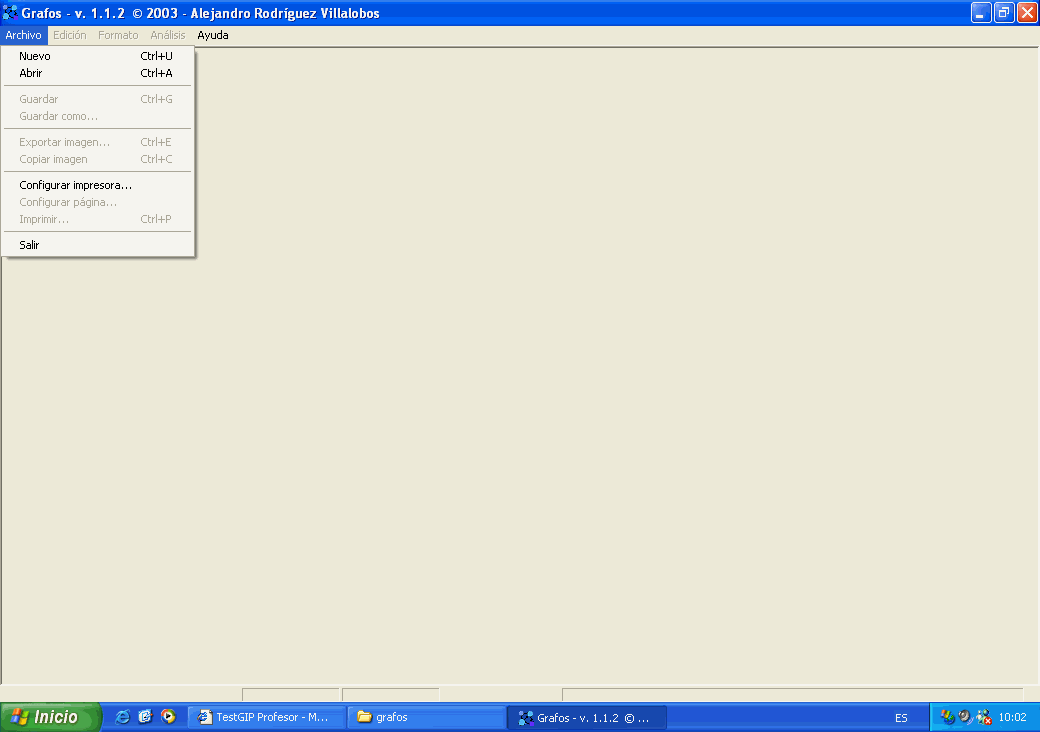 del menú Archivo, además de las opciones de crear un grafo nuevo y guardar,