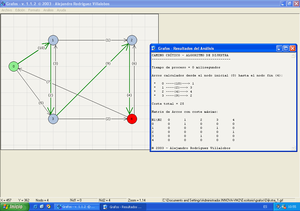 Algoritmo de Dijkstra. Cálculo del camino critico