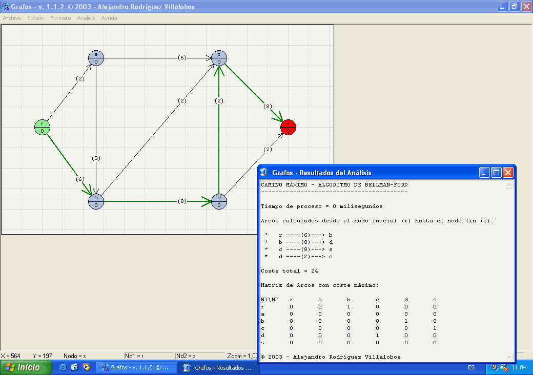 Algoritmo de Bellman-Ford. Cálculo del camino máximo