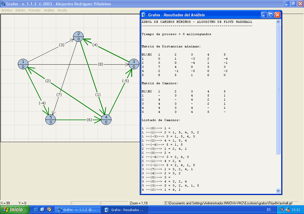 Algoritmo de Floyd Wharshall. Cálculo de todos los caminos