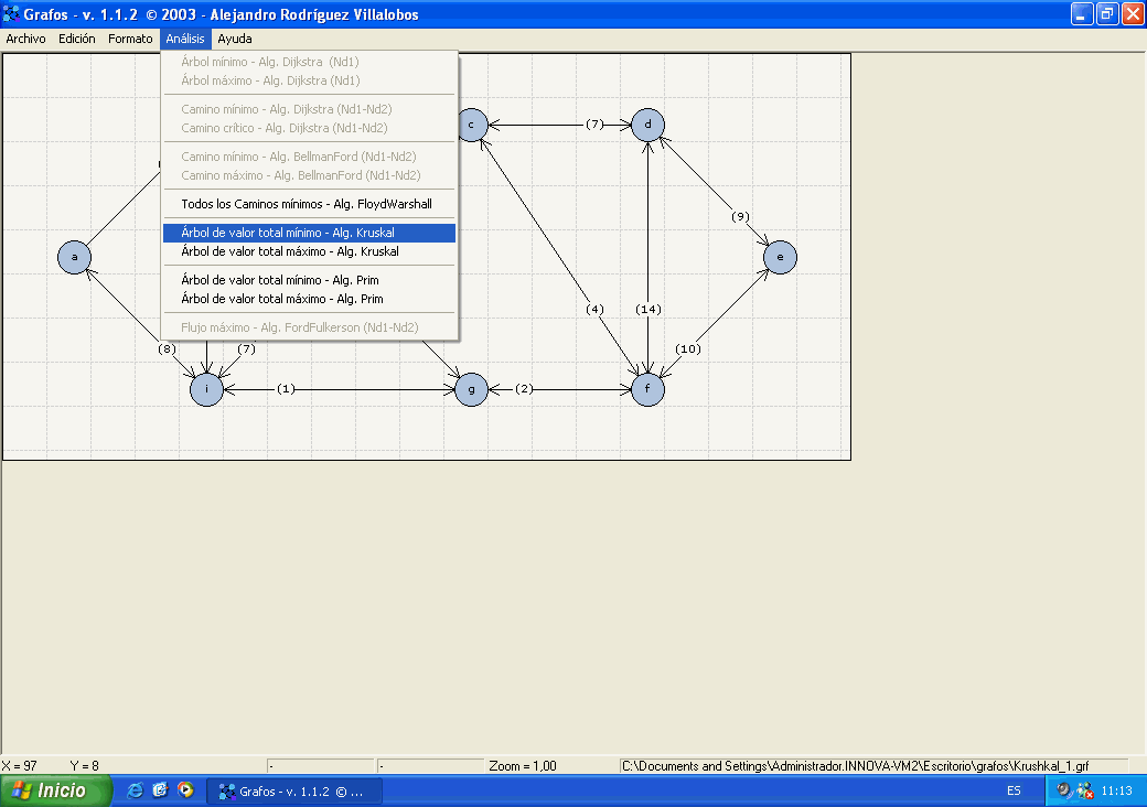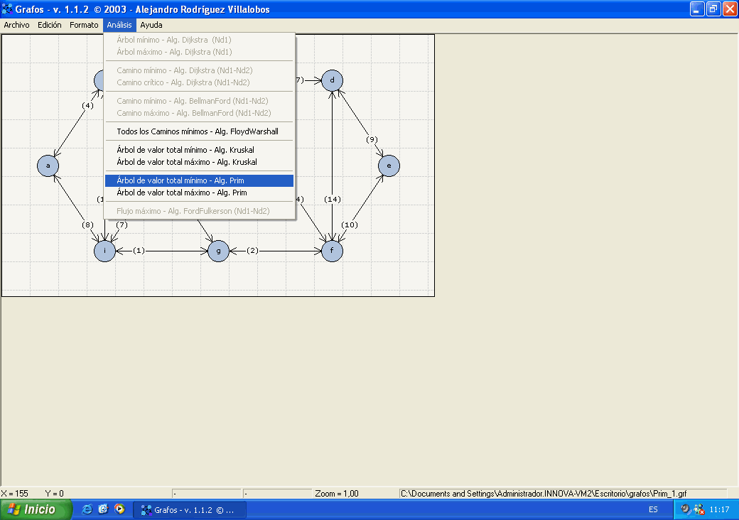 grafo, para ello, se entra en el menú Análisis y seleccionamos el análisis por