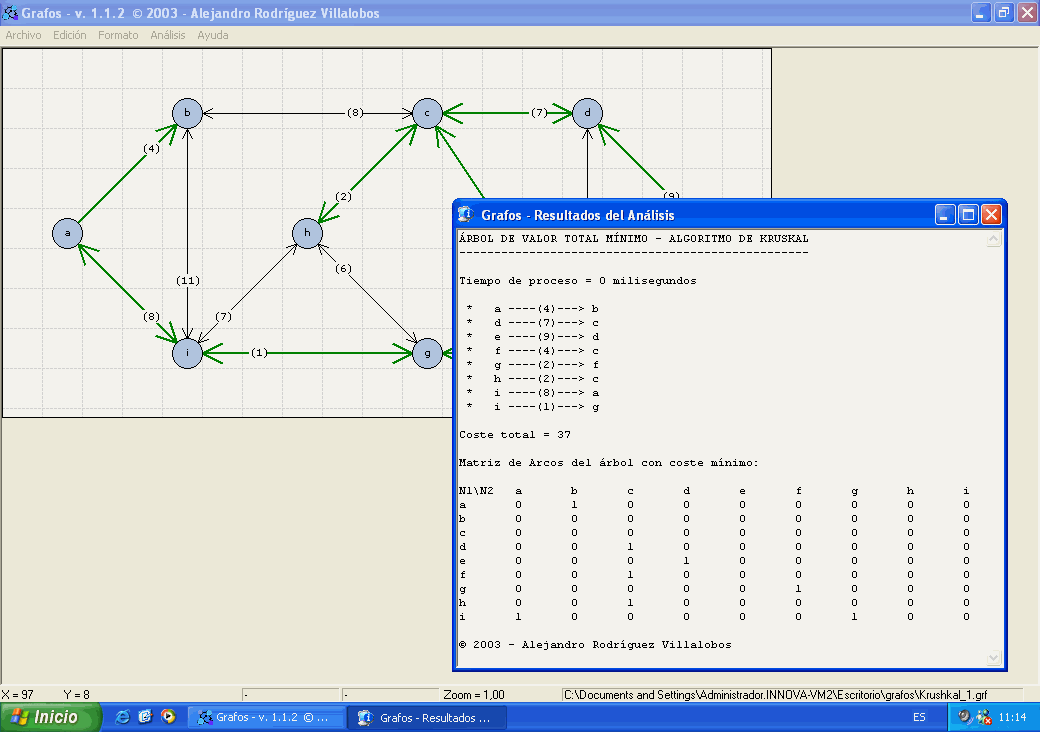 Algoritmo de Kruskal. Cálculo del árbol mínimo