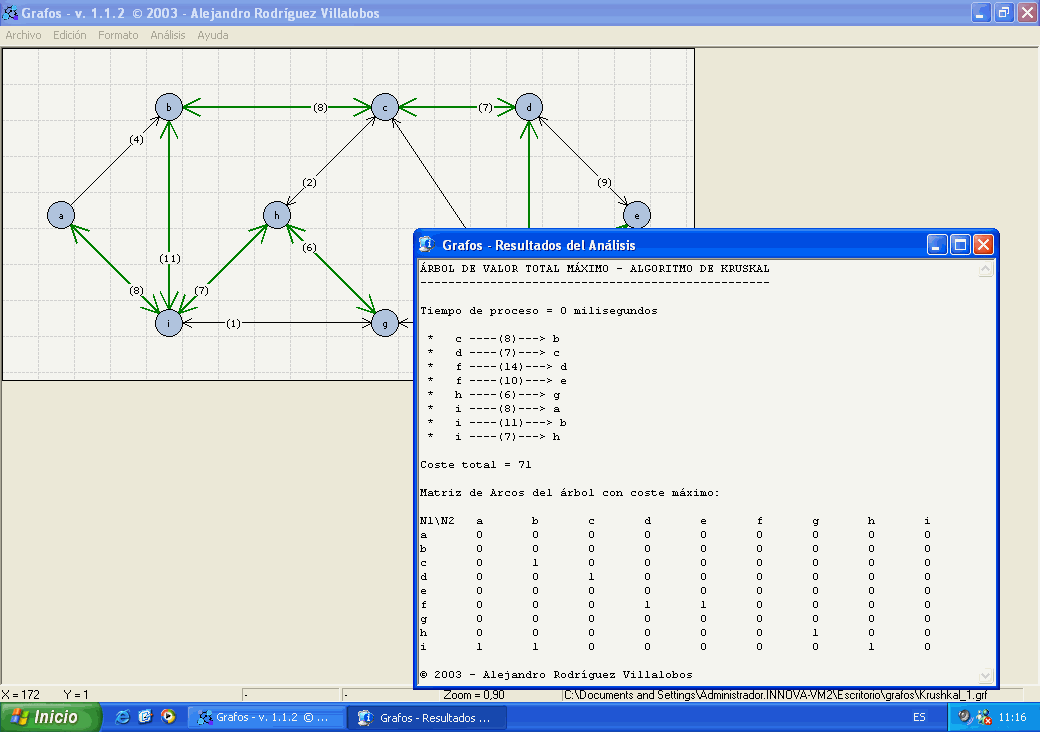 Algoritmo de Kruskal. Cálculo del árbol máximo
