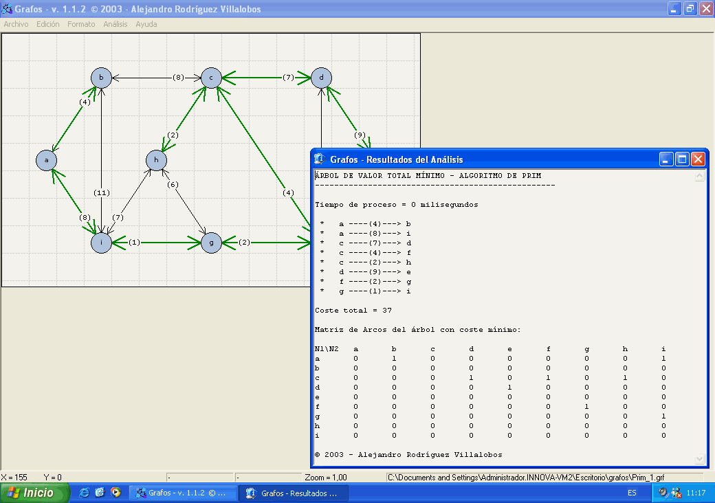 Algoritmo de Prim. Cálculo del valor total mínimo