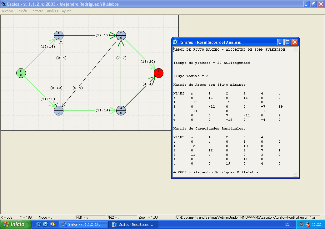 medio del algoritmo de Ford-Fulkerson, en este caso, para el cálculo del flujo