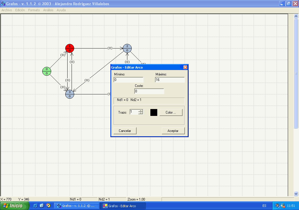 En las siguientes pantallas, se aprecia el proceso de creación de nodos y arcos, así como la edición de valores de flujo de los arcos.