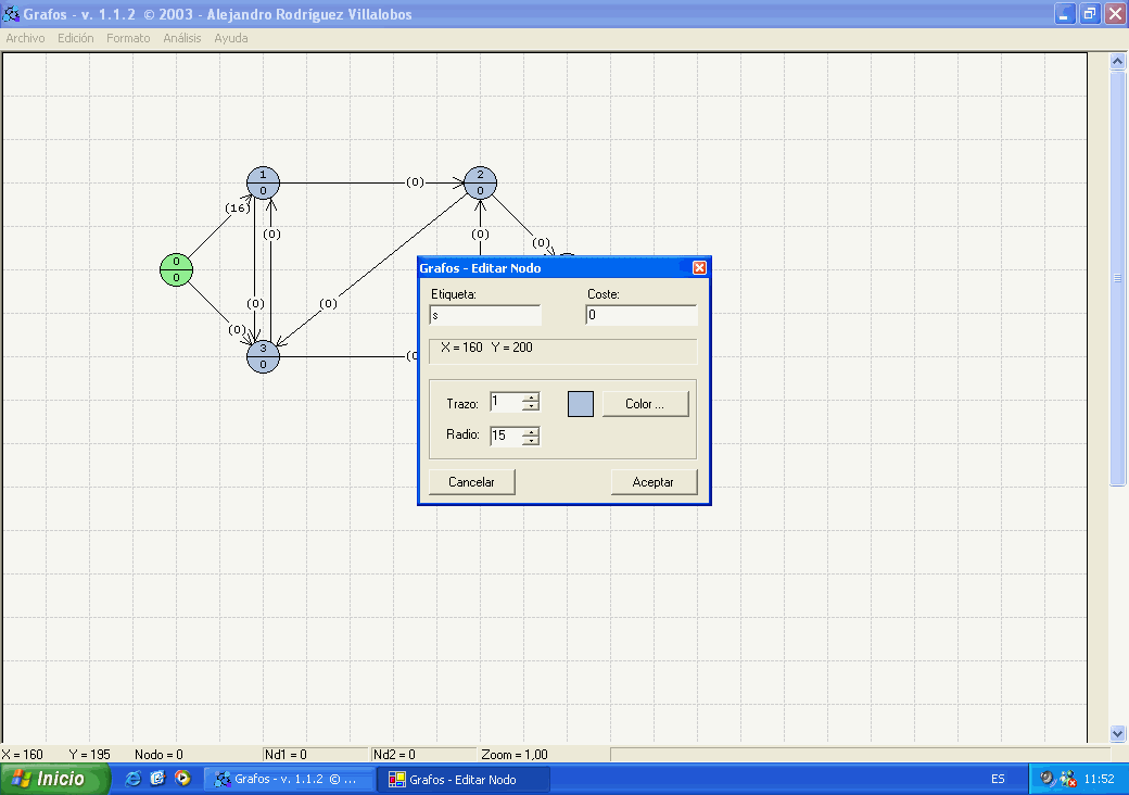 es el momento de introducir los datos (de coste, flujo, etc.) en los nodos y en