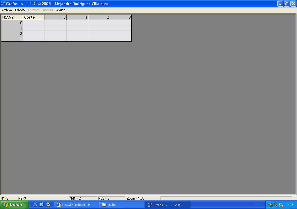 Una vez hecho esto aparecerá la tabla donde introducir los datos (de flujos, coste, etc.) del grafo.