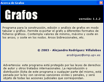 Grafos forma parte de un proyecto de investigación y desarrollo de aplicaciones informáticas de diseño modular orientadas hacia la docencia, investigación y labores profesionales de Ingeniería de Organización Industrial.