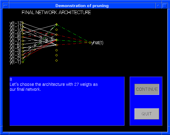 connected network architecture with 113 weights, the network is pruned