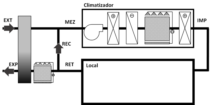 la del aire exterior y se deja recircular para alcanzar la temperatura de