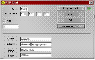 RTP_Chat is a unicast or multicast application for text conversation that transmits text using RTP and follows the specifications explained above. It is a non server based tool, with no central control point (so it is more robust but more complex than server based tools). So each user has to control its own state and the session state. In multicast sessions, a user who wants to participate only has to join the session (the session is defined by a multicast IP address and a port number). Users send text messages to that address and port number and they will be forwarded to all the other users who joined the session.