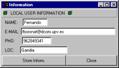Participants. There is a control list, in the main window, with all the session participants, in which the first one is the local user (Fig. 5b). If a user leaves the session or is disconnected (for example, because a network error), when the application detects it, it marks that user with a yellow bar.Information about each participant can be obtained selecting him in the users window and pushing the information icon (Fig. 5c). The configuration of local information can be viewed or changed through the main User menu, selecting the Local User Information option (Fig. 5d).
