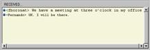 Smileys. As shown in Fig. 2, the application includes the possibility of sending smileys or icons that express participant’s mood, with the purpose of making conversations more enjoyable and friendly. User can send smileys selecting one in an icon list (by clicking the smiley icon in the main window) or writing the equivalent sequence of characters. In table 1, there are few of the smiley icons included, with their meaning and the sequence of equivalent characters.