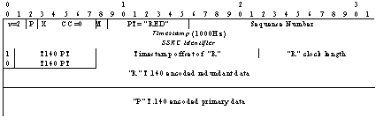 Fig. 1. RTP packet with only one redundant T140 block