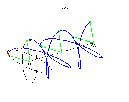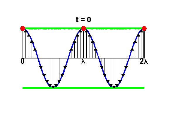 Animación ilustrativo de la Longitud de onda (distancia entre puntos rojos) para: