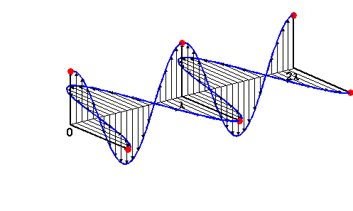 Se muestran simultáneamente el campo eléctrico (eje z) y el magnético (eje x). La propagación es hacia la derecha (eje y).