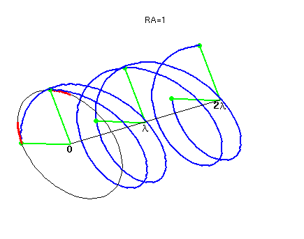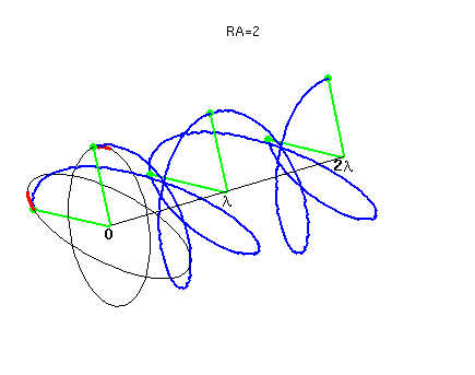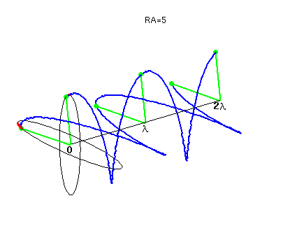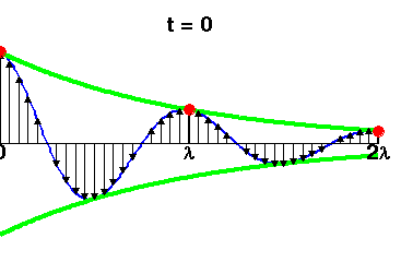 Animación ilustrativo de la Longitud de onda (distancia entre puntos rojos) para: