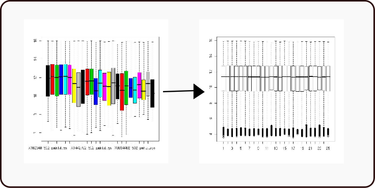 Este proceso puede ser realizado tanto por el servicio de hibridación como por el usuario y va a permitir la comparación de intensidades entre las distintas sondas del microarrays y entre microarrays. La normalización se puede basar en distintos datos:
