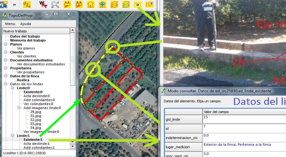 TopoDelProp no es un programa sencillo de usar, debido a que intenta solucionar un problema muy complejo: gestionar los datos topográficos y sus metadatos en la misma base de datos. El sistema le informa de si las geometrías son correctas o no y le permite enviar o recuperar documentos completos: planos, imágenes, … El manual tiene unas 100 páginas.