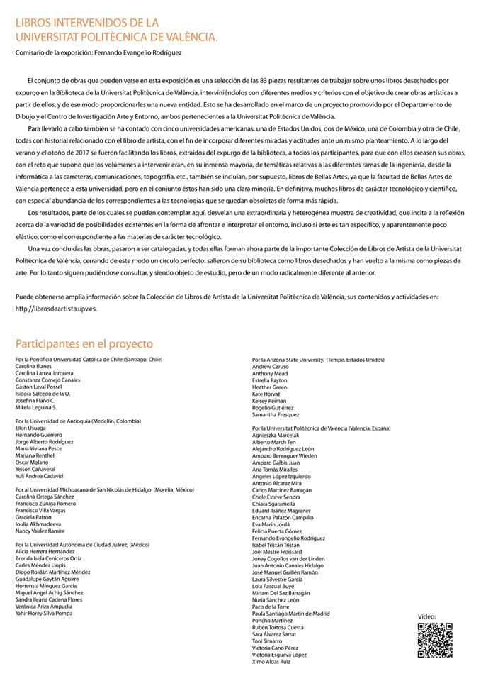 | Cuarto curso de Bellas Artes. Sala de exposiciones de la Universidad Politécnica de Valencia. | |||