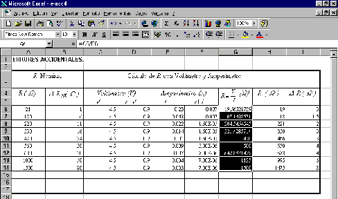 expresión en la que el subíndice i corresponde a los datos de cada punto experimental, y variará entre 1 para el primer punto y N para el último.