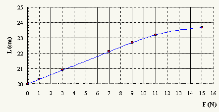 observamos que en un principio la longitud aumenta linealmente con la fuerza aplicada. A partir de un cierto valor de fuerza la pendiente disminuye progresivamente. Una representación gráfica nos ayuda en la interpretación de los resultados y nos permite averiguar rápidamente algunos valores relacionados con la experiencia efectuada: pendiente inicial, puntos intermedios, punto de inicio de pérdida de linealidad, etc.