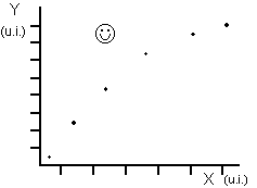 Estudiamos un fenómeno en el que medimos dos magnitudes físicas: longitud (y) y tiempo (x).