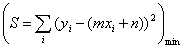 El problema que tendremos que resolver será calcular la ordenada en el origen y la pendiente de la recta, m y n, de tal forma que el sumatorio de las distancias entre cada punto experimental y la recta elevadas al cuadrado, S, sea mínimo: