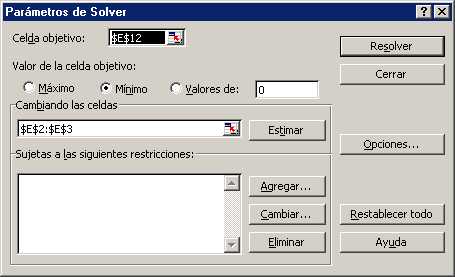Con la función Solver de Excel puede buscarse el valor óptimo para una celda, denominada celda objetivo, en una hoja de cálculo. Solver funciona en un grupo de celdas que estén relacionadas, directa o indirectamente, con la fórmula de la celda objetivo. Solver ajusta los valores en las celdas cambiantes que se especifiquen, denominadas celdas ajustables, para generar el resultado especificado en la fórmula de la celda objetivo. Pueden aplicarse restricciones para restringir los valores que puede utilizar Solver en el modelo y las restricciones pueden hacer referencia a otras celdas a las que afecte la fórmula de la celda objetivo.