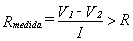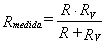 Utilizando la ecuación de la asociación en paralelo de la resistencia interna del voltímetro, RV, y la resistencia que debes medir, R: