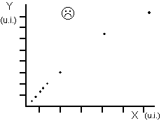 Estudiamos un fenómeno en el que medimos dos magnitudes físicas: longitud (y) y tiempo (x).