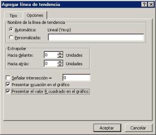 Si representamos gráficamente los resultados de una experiencia en Excel, una de las opciones de la hoja de cálculo es la de agregar líneas de tendencia. Por ejemplo: en la hoja representamos la temperatura en un depósito, eje y en la columna B, en función del tiempo transcurrido, eje x en la columna A.