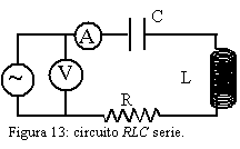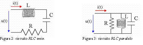 El circuito que se va a analizar está compuesto por tres elementos: resistencia, bobina y condensador. Se analiza su comportamiento tanto al conectarlos en serie (figura 2) como cuando están en paralelo (figura 3). En particular, se medirá la intensidad que circula por el circuito al aplicar una diferencia de potencial alterna entre sus terminales y a distintas frecuencias. La relación entre tensión e intensidad permitirá conocer la impedancia del circuito.