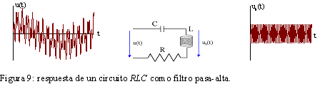 Así, si se considera como terminales de salida los bornes del condensador, y con un diseño adecuado del circuito, se obtendría la respuesta que aparece en la figura 8: