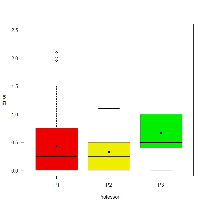 The figure at the right shows the distribution of assessment errors made by teachers with a box plot.